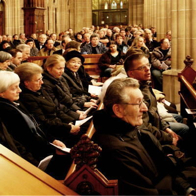 500 Menschen, auch Heimbewohner, feiern mit in der Marienkirche.