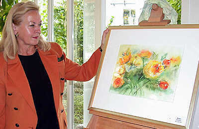 Rosemarie Khan mit einem ihrer Blumenbilder.