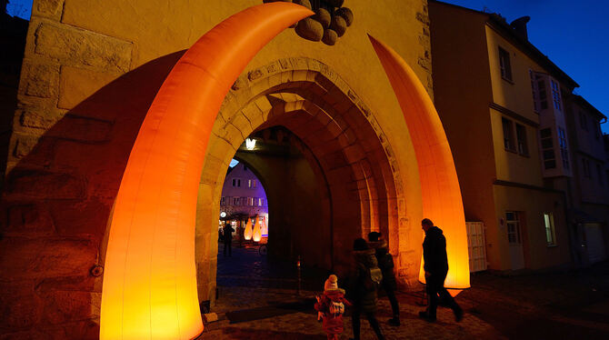 Lange Einkaufsnächte sind in. Das zeigte sich am Samstagabend in der Achalmstadt, wo trotz kühler Temperaturen um den Gefrierpunkt Tausende durch die Geschäfte und Straßen flanierten. Schnäppchenjäger sollten ebenso angelockt werden wie Freunde der besinnlichen Weihnachtszeit. Für besonderes Aufsehen sorgte die originelle Musik- und Lasershow, die in wechselnden Formen aus Licht, Farbe und Nebel geometrische Figuren auf die Gebäude rund um den Marktplatz projizierten. Außerdem gab es illuminierte Installationen in der gesamten Innenstadt und Gebäude wie die Stadthalle und das Rathaus wurden weihnachtlich angestrahlt.