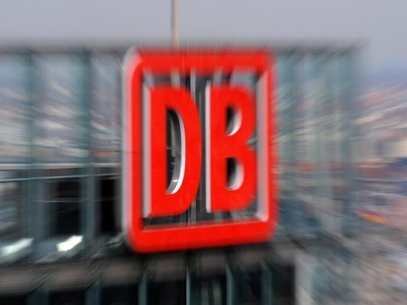 Das Logo der Deutschen Bahn AG am Bahn-Tower in Berlin. Foto: Gero Breloer