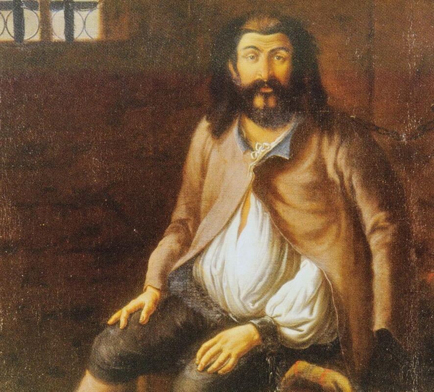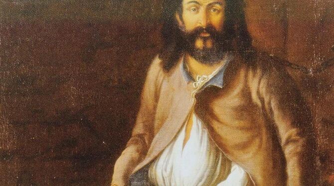 Porträt von Hannikel alias Jakob Reinhardt im Sulzer Gefängnisturm 1786. Gemälde von Johannes Hermann.