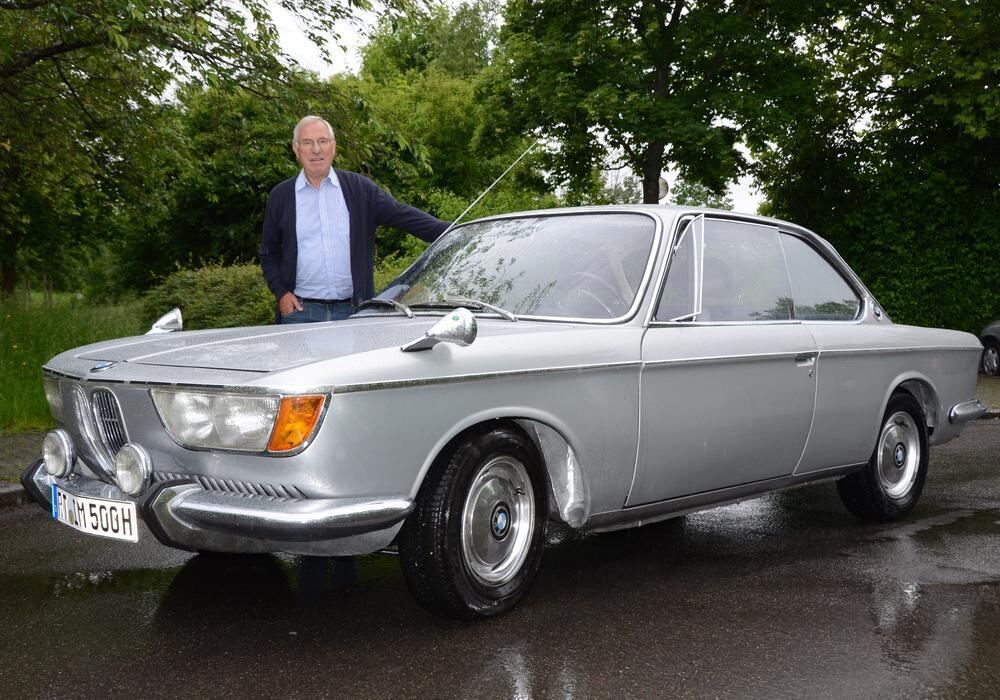 Sportlich unterwegs: Günter Maaß aus Altenburg, ehemaliger Vertragsspieler beim SSV Reutlingen, mit seinem BMW 2000 Coupé Automatik. GEA-FOTOS: CONZELMANN