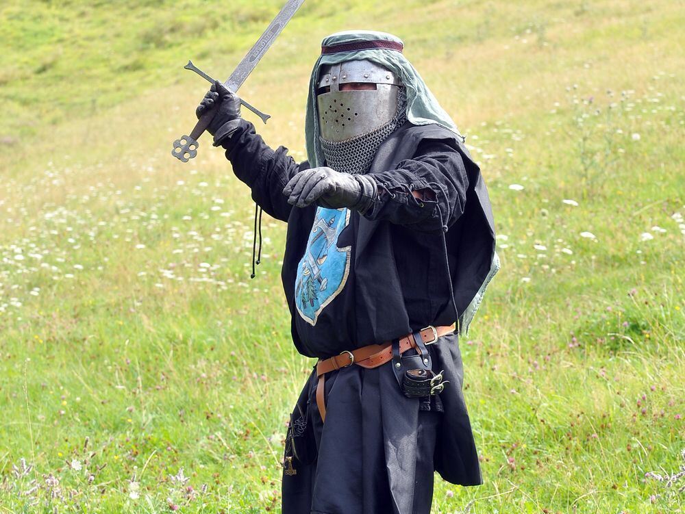 Graf Johann von der Achalm schwingt das Schwert und fordert den Achalmritter Frank Christoph Schnitzler heraus, falls der den Wappenstreit mit dem Landkreis nicht beilegt. Sein eigenes Wappen hat eine Ofterdinger Künstlerin gestaltet.