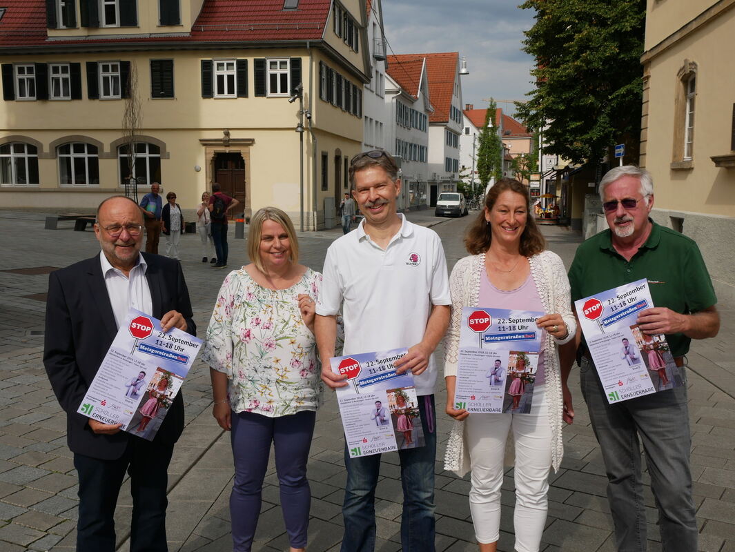 Freuen sich nun auf möglichst viele Gäste (von links): Rolf Göbel, Heike Packert, Andreas Salomon, Daniela Hamminger und Klaus-Dieter Kühn. Sie bilden das Festkomitee des Metzgerstraßenfests. FOTO: LEISTER