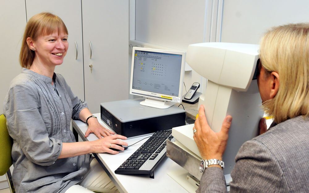 Augenuntersuchungen gehören zu den Aufgaben des arbeitsmedizinischen Dienstes: Dr. Bettina Osebek bei der Arbeit.