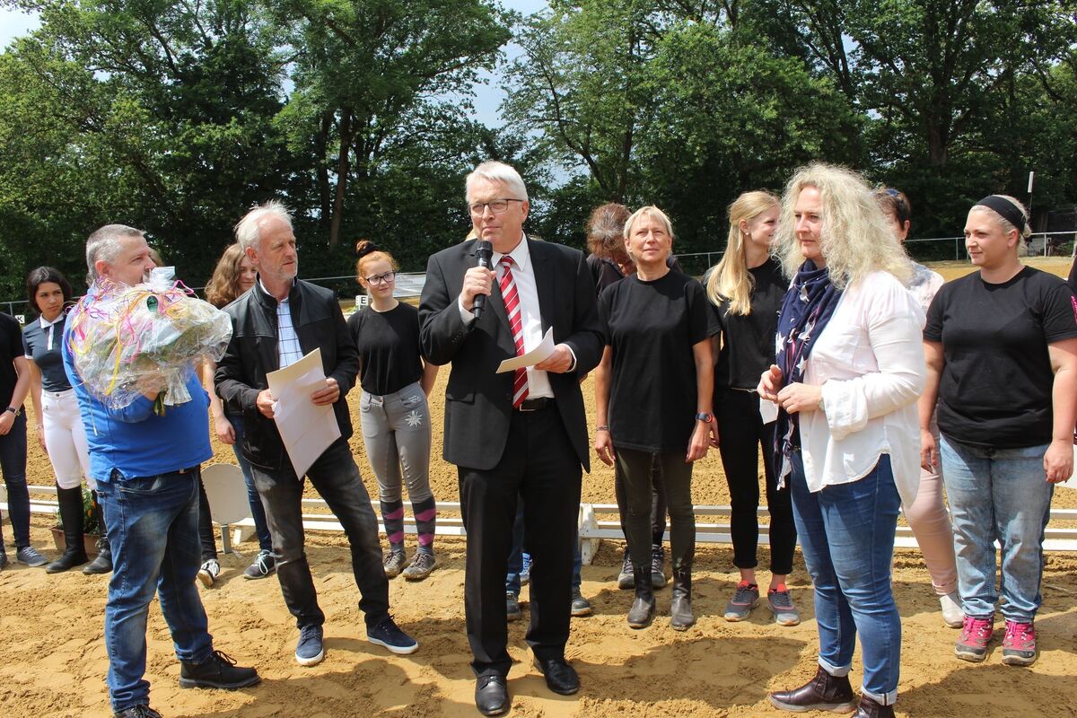 Bürgermeister Robert Hahn würdigte Claudia Königs (vorne) Engagement und überreichte ihr die Ehrennadel. foto: spiess