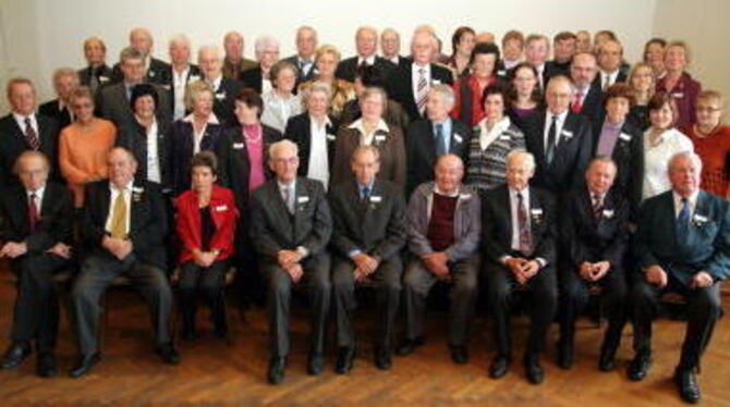 Sie waren der Mittelpunkt der Uhlandgau-Matinee: 67 Sängerinnen und Sänger, die für ihre langjährige Chor-Zugehörigkeit geehrt wurden.