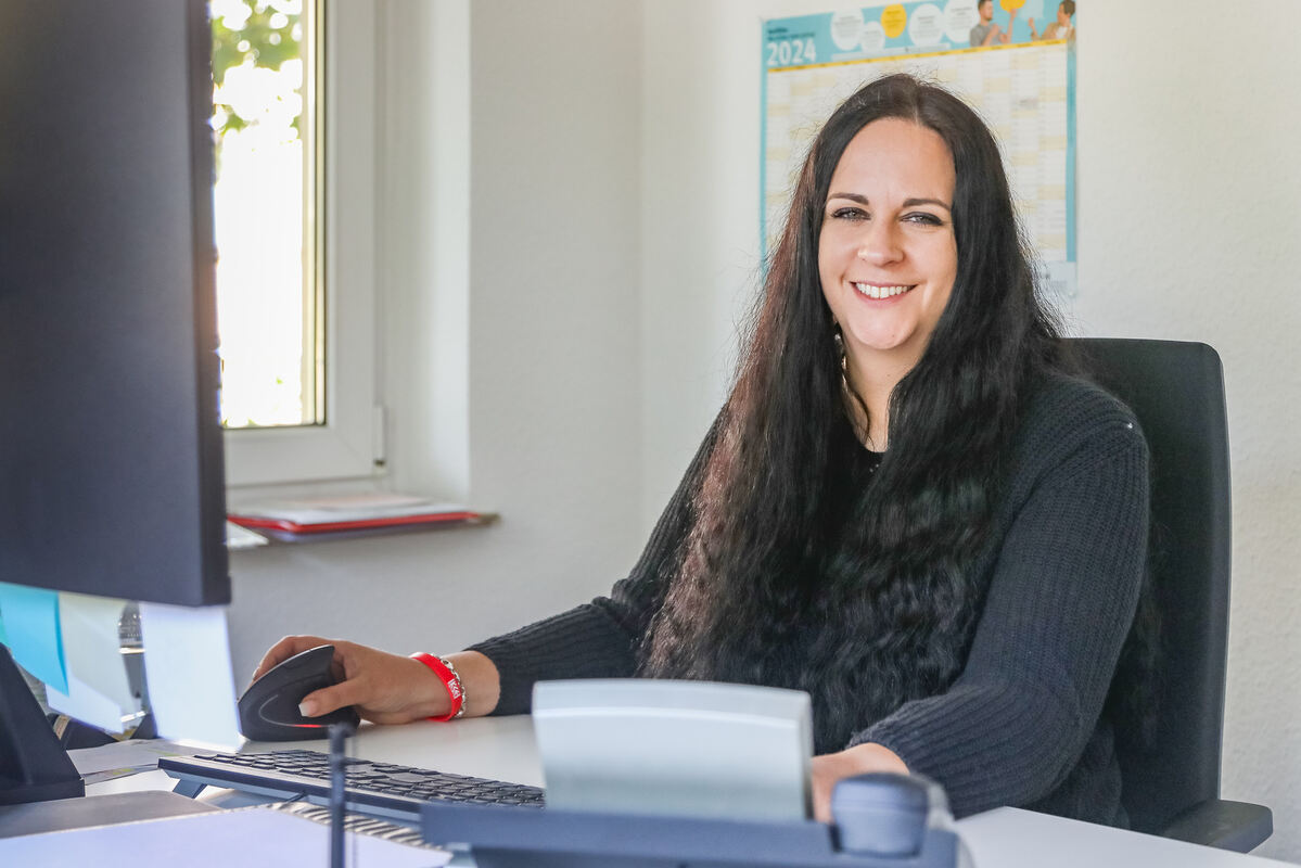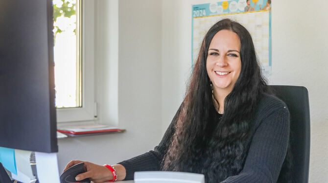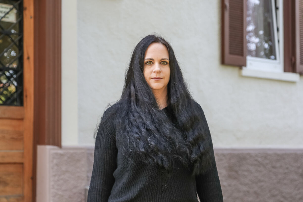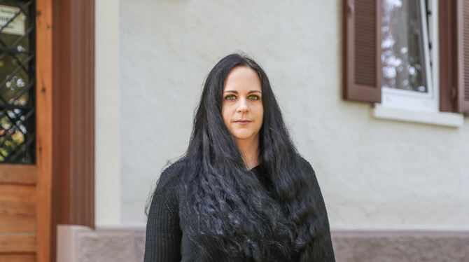 Jasmin Rentschler steht vor dem Aufnahmehaus für Männer in Reutlingen.