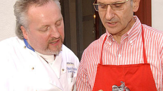 Stimmt die Temperatur? Klaus Knorn (links) und Fritz Haux haben zur Martinsgans einen Reutlinger Kimmicher-Knödel kreiert und lassen ihn patentieren.
