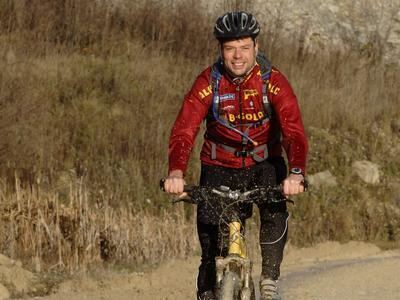 Ohne dicke Herbstklamotten könnte man es fast für afrikanische Savanne in der Regenzeit halten - Markus Widmann trainierte im Steinbruch von Genkingen für die Tour d' Afrique, ein Mountainbike-Rennen von Kairo ans Kap der Guten Hoffnung.