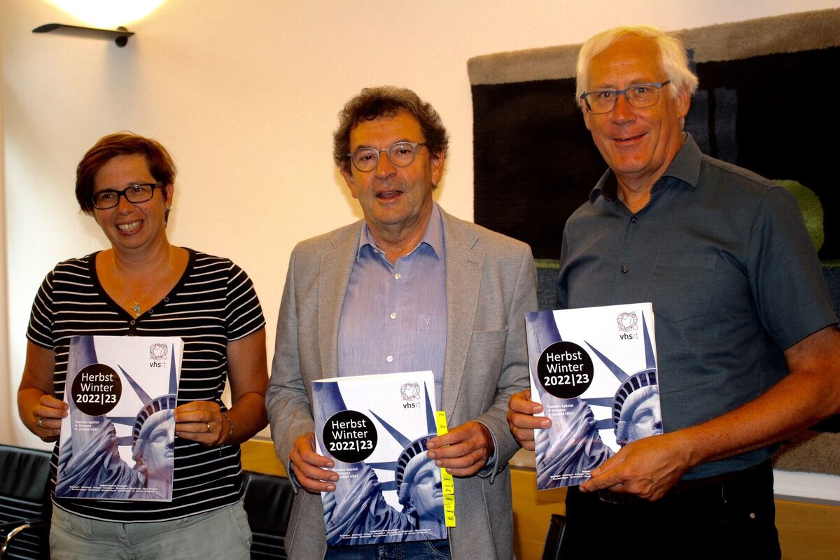 Die für allgemeine und kulturelle Bildung zuständige Irene Karki, Geschäftsführer Dr. Ulrich Bausch und Pressereferent Stefan Junger stellten das neue Herbst-Winter-Programm der VHS vor. FOTO: SPIESS