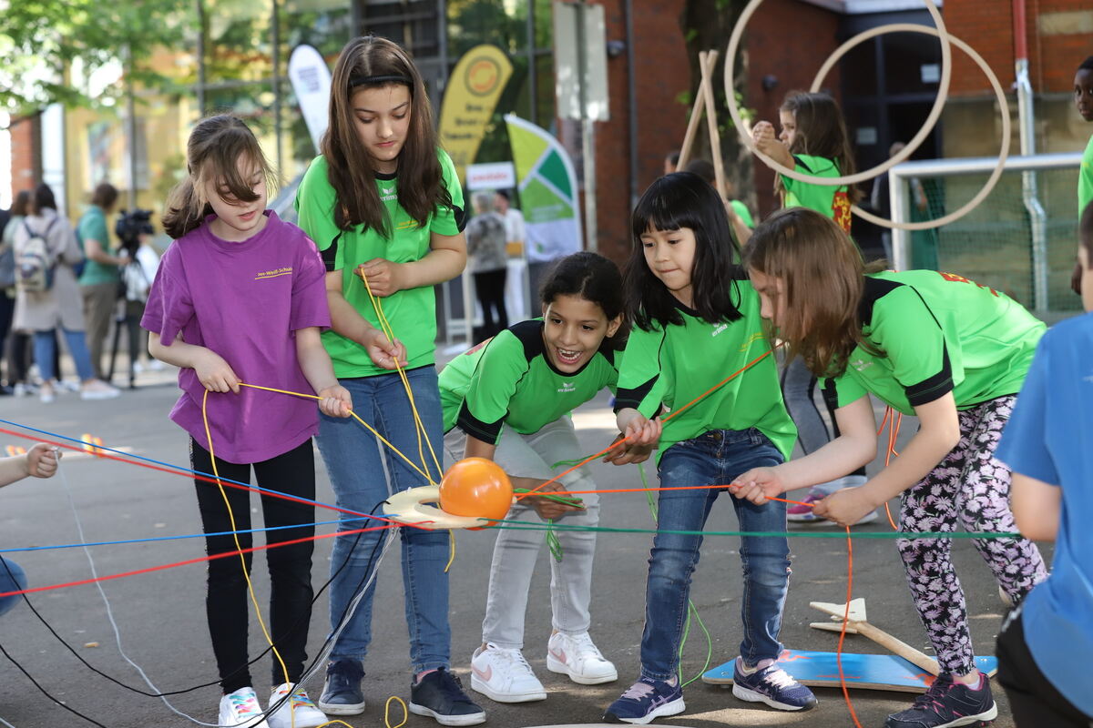 Jede Menge Spaß hatten Schülerinnen und Schüler der Jos-Weiß-Schule gestern beim Ausprobieren der Spiel- und Sportgeräte. FOTO: REISNER