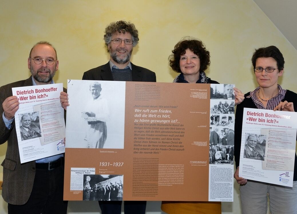 Veranstaltungsreihe zu Dietrich Bonhoeffer (von links): Frieder Leube (Evangelische Bildung), Christuskirchenpfarrer Martin Burgenmeister, Brigitte Zirngibl (Bezirksarbeitskreis Frauen) und Kantorin Michaela Frind.