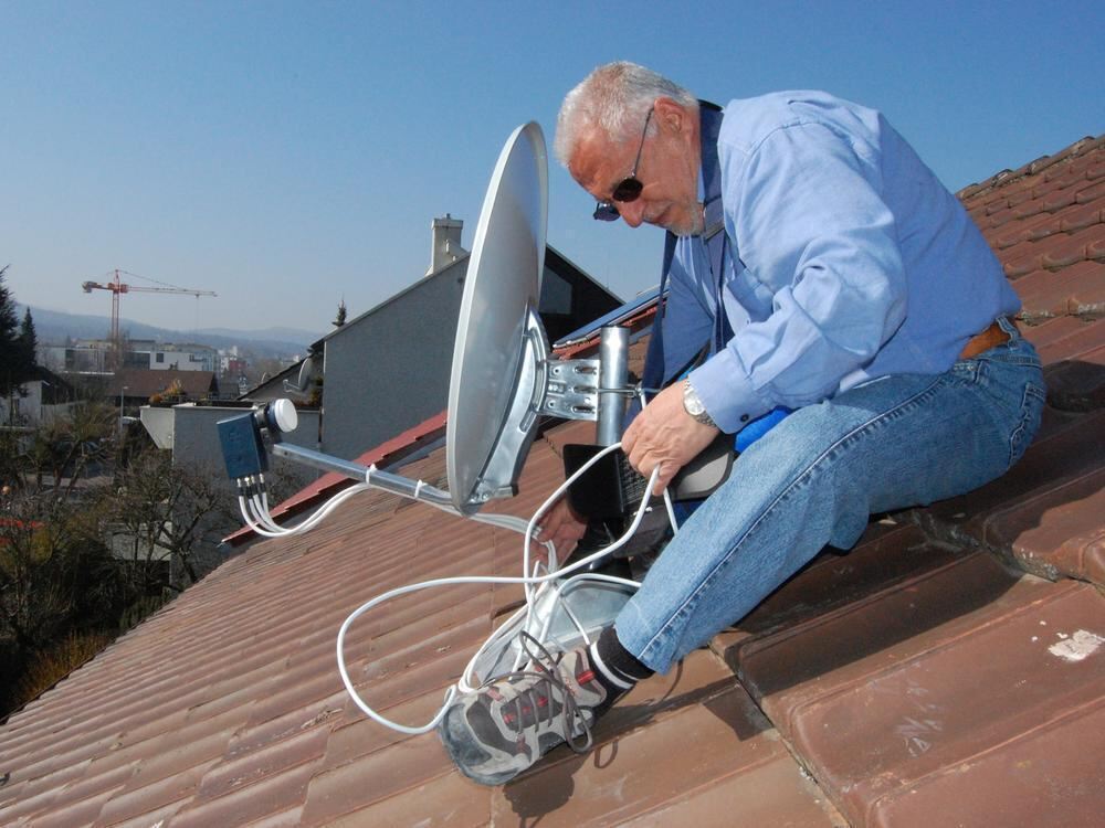 Elektro-Rentner in Aktion: Cirous Alborz inspiziert eine Sat-Anlage.