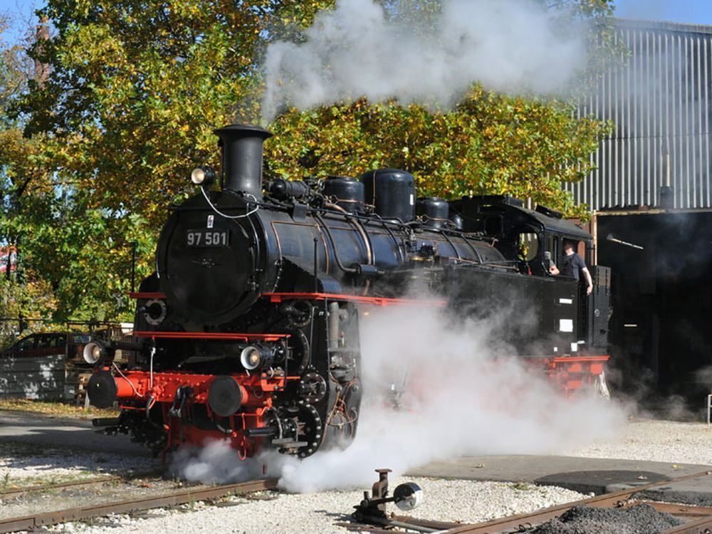 Die Lok 97 501 im Lokschuppen am Westbahnhof. Mittlerweile ist sie fertig restauriert. Damit sie aber dauerhaft in Betrieb gehen kann, bedarf es einer Grube, um sie regelmäßig untersuchen und warten zu können. GEA-ARCHIVFOTO