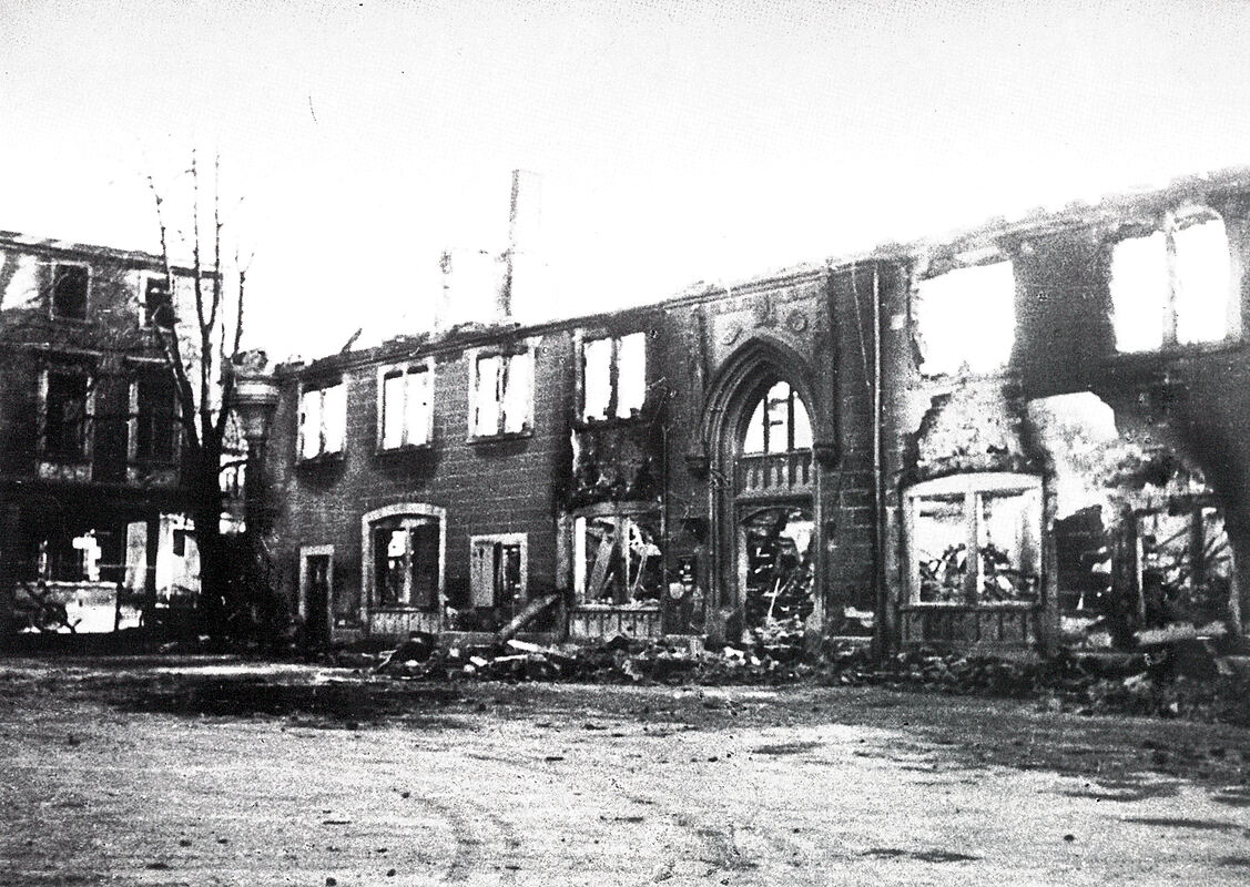 Weil Frau Kachel von der Kachel'schen Apotheke an der Ecke zur Wilhelmstraße Sorge hatte, dass Flammen übergreifen, haben die Kinder mit Leiterwägelchen von dort die medizinischen Vorräte in die Bürstenmacherwerkstatt von Ingrids Großvaters gebracht. »Den unteren Stock hat man gefüllt mit der Apotheke. Das ist meine große Erinnerung. Und dann seh' ich noch das Rathaus in Schutt und Asche.«