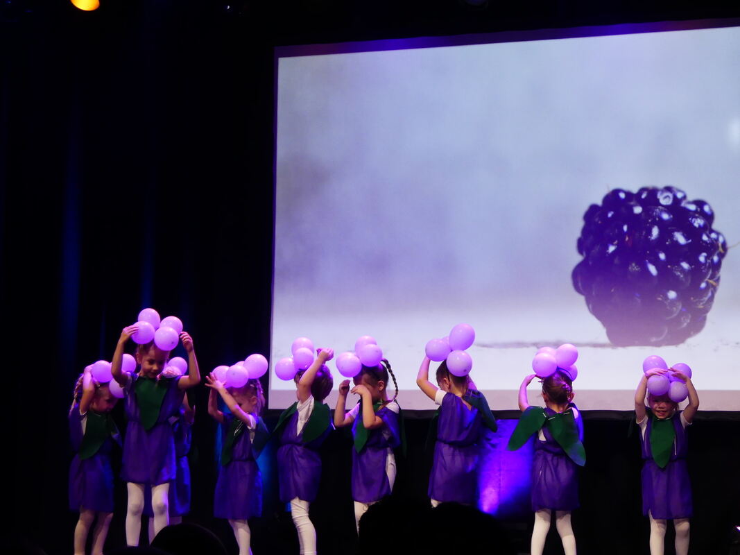 Schon zu Beginn der Show nahmen die Tänzerinnen das Publikum in das rege Treiben im Dschungel mit. Neben Wölfen, Faultieren, Schlangen, Ameisen, Bienen und Affen tänzelten sich auch allerhand Früchte durch die sattgrünen Wälder. Die Jüngsten drehten sich als Brombeeren, Ananas oder Melonen über die Bühne und sorgten mit ihren goldigen Kostümen und strahlenden Gesichtern für viel Schmunzeln im Publikum. »Drei Näherinnen haben sich um die Kostüme gekümmert«, erzählt Sabrina Wurster, die Inhaberin der Tanzschule. Für jede der 50 Szenen mussten die Kostümbildner die Tänzerinnen mit neuen Röcken, Tüll und Bodys ausstatten. Für die Elefanten gab es außerdem Elefantenohren, die Faultiere bekamen Gesichtsmasken und die Äffchen waren an ihren Schwänzchen und Ohren zu erkennen.
