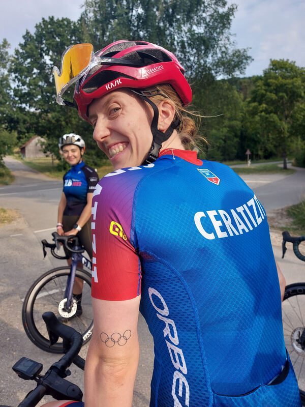 Fleißig. Schinden muss sich Franzi immer, egal, ob sie allein, mit Luka oder ihren Mädels trainiert. Wenn’s nur ein lockeres, aber (bis zu sechs Stunden) langes Grundlagentraining ist, ist Sitzfleisch gefragt. Am Tag der GEA-Ausfahrt hatte sie morgens erst einen Leistungstest auf der Rolle gemacht, dann auf der Gönninger Steige ein dreiminütiges »All-out-Intervall« runtergerissen. Mit der Folge, dass sie bei der Ankunft am Treffpunkt erst mal ein Energy-Gel reinpresste, bevor sie die vielen Fragen beantwortete. Der Körper einer Leistungssportlerin will optimal versorgt sein.