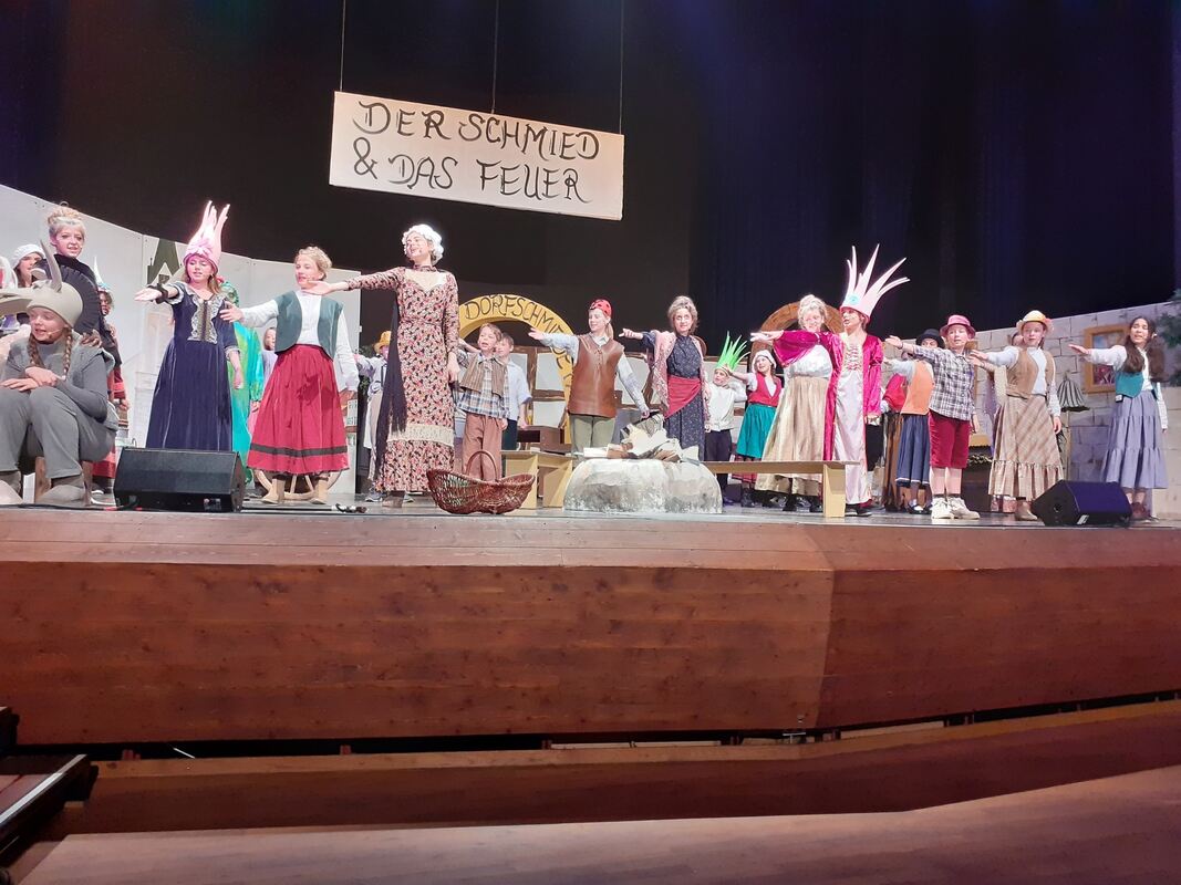 Die Musical-AG der Eichendorff Realschule hat das von Manuela Hepp-Röcks geschriebene Märchenmusical »Der Schmied & das Feuer« überzeugend auf die Bühne gebracht. FOTO: HLOBIL