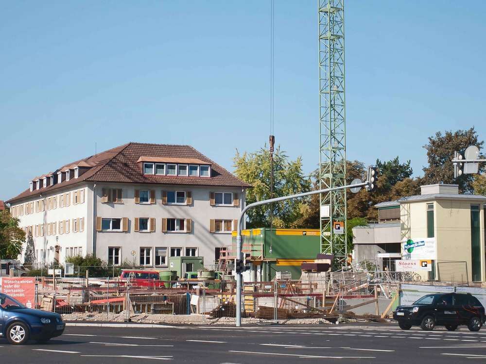Ein Beispiel für die Investitionstätigkeit der Bruderhaus-Diakonie im Hinblick auf die dezentrale Versorgung mit Pflegeplätzen: die Baustelle für das neue Altenheim Stadtmitte am Wandelknoten.