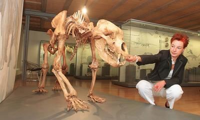 Museumsleiterin Dr. Barbara Karwatzki ist stolz auf den neuen Höhlenbären.