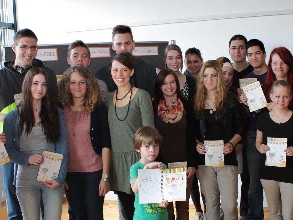 Schüler der Kerschensteiner- und der Laura-Schradin-Schule stellten ihr Koch- und Malbuch für Kinder im Forum der Innungskrankenkasse (IKK) in Reutlingen vor.