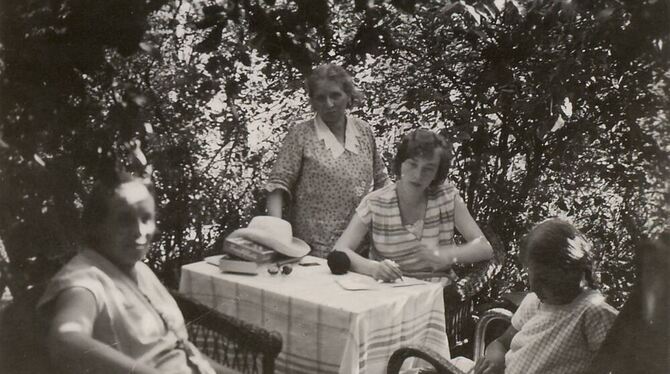 Elisabeth Zundel (1874 - 1957) engagierte sich für Frauen und sozial Schwache. Das Foto zeigt sie (Mitte, stehend) in ihrem Garten in der Schlegelstraße; die anderen Personen auf dem Bild sind nicht namentlich bekannt. QUELLE: HEIMATMUSEUM