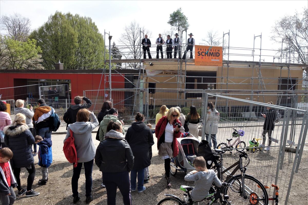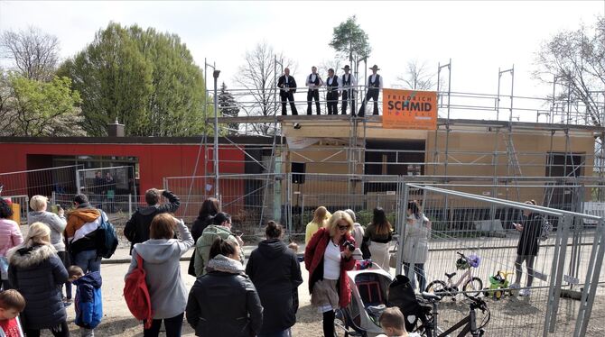 Am Richtfest des Kindergartens in der Humboldtstraße beteiligten sich Groß und Klein. FOTO: BÖHM