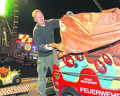 »Entzückend Baby«: Das Sommerfest in Nürtingen ist zuende, der Reutlinger Schausteller Kai Weeber baut sein Karussel ab.