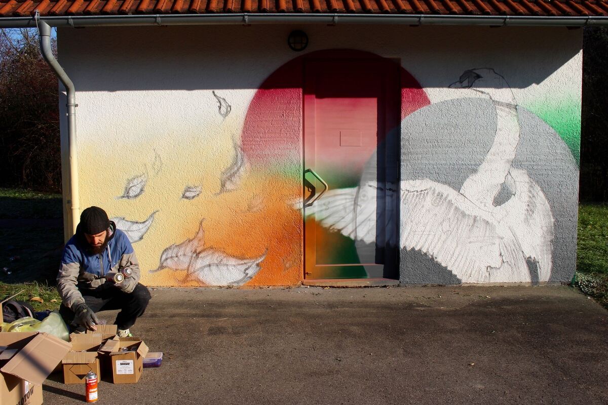 REUTLINGEN. Auch das ist Kunst im öffentlichen Raum: Gestern verpasste der Tübinger Künstler Johannes Blinkle, bekannt als »Looven«, einem Betriebsgebäude der Stadtentwässerung Reutlingen (SER) einen neuen Anstrich. Die Verschönerung des Gebäudes an der Reutlinger Straße in Sondelfingen dient als Pilotprojekt, um zukünftige »Schmierereien« zu vermeiden. In den vergangenen Monaten wurden mehrere Betriebsgebäude der SER mit sogenannten Tags und wenig anspruchsvollen Graffitis besprüht. Daraus entstand die Idee, das Gekritzel auf dem am besten von der Straße einsehbaren Betriebsgebäude von einem Profi übersprayen zu lassen: »Wir wollten zwei Fliegen mit einer Klappe schlagen«, so Matthias Glück, Projektleiter für Sonderaufgaben bei der SER. Zum einen sollte das Gebäude durch anspruchsvolle Wandmalereien verschönert werden. Zum anderen will man damit weitere ungewollte Schmierereien vermeiden. »Denn«, so Johannes Blinkle, »vor allem weiße Wände ziehen illegale Sprüher magisch an«. Der Graffiti-Künstler brauchte seit Montag etwa 24 Stunden, um das Gebäude eines Regenüberlaufbeckens mit seinen fotorealistischen Schwänen zu verschönern. Die Umgestaltung weiterer verschandelter Betriebsgebäude ist bereits in Planung. (jüsp)