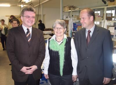 Margarete Schlotterbeck mit Bezirksbürgermeister Elmar Rebmann (links) und Works-Kiefner-Firmenchef Jörg Kiefner.