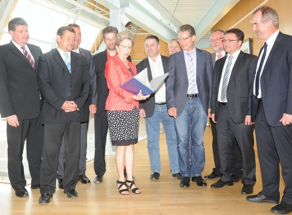 Die Bürgermeister von Bodelshausen, Dettingen/Erms, Dußlingen, Laichingen, Langenau und Münsingen sowie die OBs von Metzingen, Mössingen und Tübingen unterzeichneten zusammen mit Barbara Bosch in der Reutlinger Stadtbibliothek eine Vereinbarung für die interkommunale Zusammenarbeit zum Verbund der elektronischen Ausleihe.