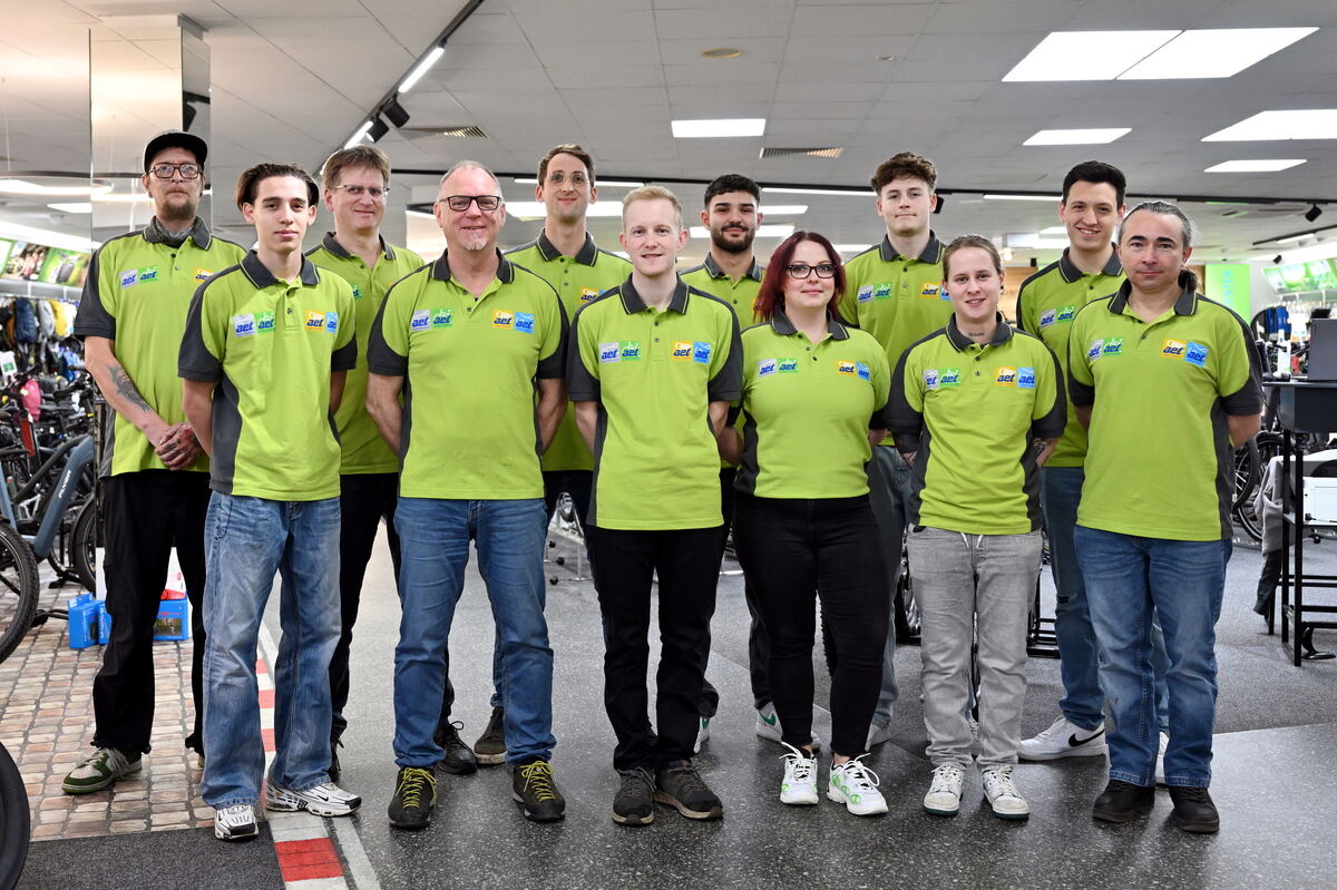 Zu den großen Dienstleistungsthemen im Fahrradhandel gehört das Leasing. »Wir haben alle großen Leasinggeber im Programm«, sagt Luca Bendrin. Leasing laufe immer über den Arbeitgeber. Hier zeige sich, dass die Verkäufe von Rädern ohne Motor zugunsten von E-Bikes zurückgehen. Das E-Bike sei oft eine Alternative zum Auto, ein Verkehrsmittel, um damit zur Arbeit zu fahren. »Die Rad-Infrastruktur könnte aber noch verbessert werden«, ergänzt Bendrin. Leasingfahrräder erfordern einen regelmäßigen Kundendienst, der üblicherweise von der Leasinggesellschaft übernommen wird, ebenso die Kosten für Verschleißteile. Auch wenn ein Fahrrad nicht geleast ist, besteht die Option, eine Verschleißversicherung direkt bei aet abzuschließen. Für sportive Fahrer, die erstmals auf ein E-Bike umsteigen, sei der eingangs genannte Trend zum Leichtrad perfekt. Aber es gibt noch mehr technische Innovationen, die das E-Bike attraktiv machen sollen. Ein Trend, der langsam wiederkommt, ist der Hinterradmotor. »Die Kraft entfaltet sich direkt am Rad. Das bedeutet weniger Verschleiß«, erläutert Olaf Kerstädt. Das aet E-BikeCenter sei hier mit allen Antriebsarten und allen Motorenherstellern breit aufgestellt. Für Aufmerksamkeit in der E-Bike-Welt sorgt auch der neue Pinion-Mittelmotor, bei dem das Getriebe im Motor sitzt. Zusammen mit einem Riemenantrieb ist das System sehr wartungsarm. Preislich befinde sich dieser Motor eher im oberen Bereich, meint Luca Bendrin. Olaf Kerstädt ergänzt: »Es gibt eben für jeden Kundentyp ein E-Bike – vom Gelegenheits- bis zum Extremradler.«
