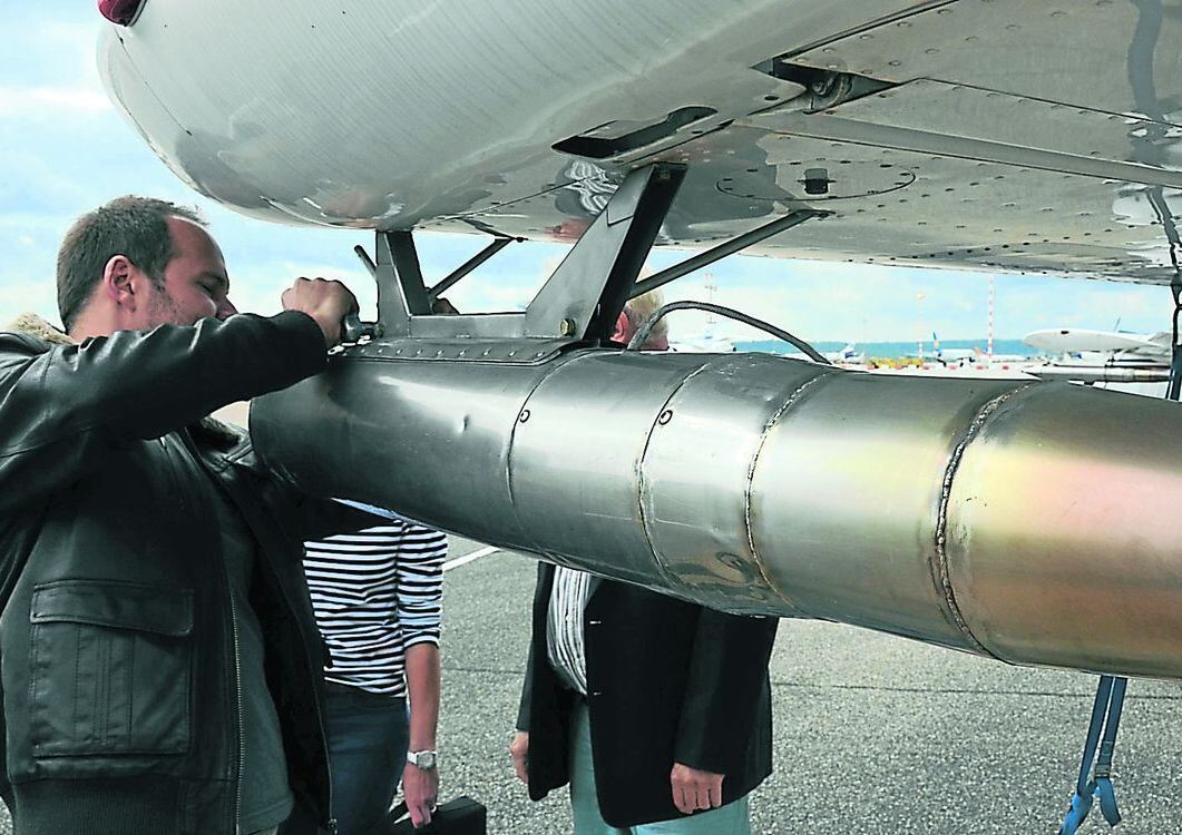 »Rauchtüte« klar zum Feuern: Berufspilot Markus Duwe prüft den Rauchentwickler an der linken Tragfläche. Dieses Jahr flog er zehn Einsätze. GEA-FOTO: HANS JÖRG CONZELMANN