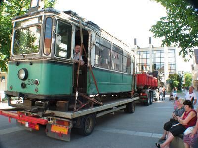 Ralf Mädler auf der »Kommandobrücke« des »Triebwagens 53«. Die 1928 gebaute Straßenbahn kehrte gestern nach Reutlingen zurück. Rund zehn Stunden brauchte Peter Grüner für die Fahrt von Wuppertal unter die Achalm.