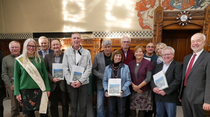 Sieben Kommunen, Initiativen und Einzelpersonen wurden vom Verein »Blumenwiesen-Alb« sowie von Landrat Thomas Reumann (rechts) für ihr Engagement geehrt. FOTO: LEISTER