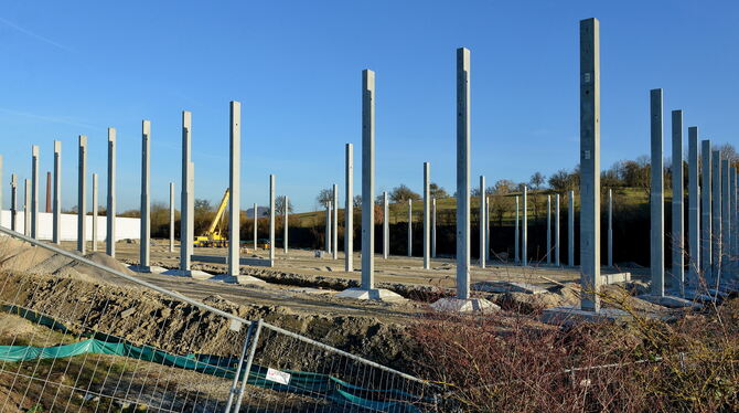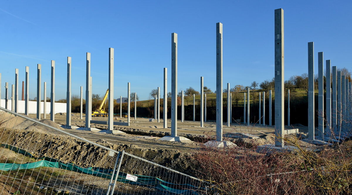 Die Stahlbetonstützen für die neue Bosch-Logistikhalle stehen bereits. FOTO NIETHAMMER