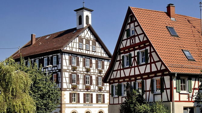 Besucher des Rathauses empfängt ein Unkrautteppich. Dieser Wildwuchs soll durch Fugenversiegelung behoben werden. Foto: GEA-Archiv