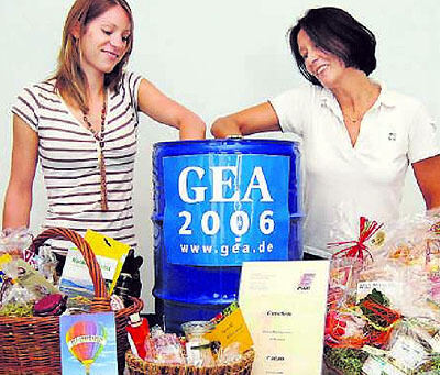Regionale Vielfalt im Korb und Gutscheine für Erlebnis-Touren: Simone Ströbele und Sabine Hirrle (rechts) ziehen die Gewinner der GEA-Markt-Rallye.