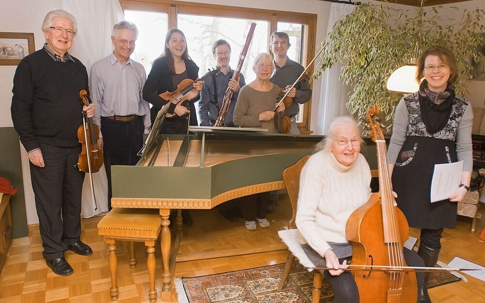 Das »Ensemble für Alte Musik Reicheneck« probt derzeit im Wohnzimmer seiner Gründerin Helga Klein (vorne, sitzend).