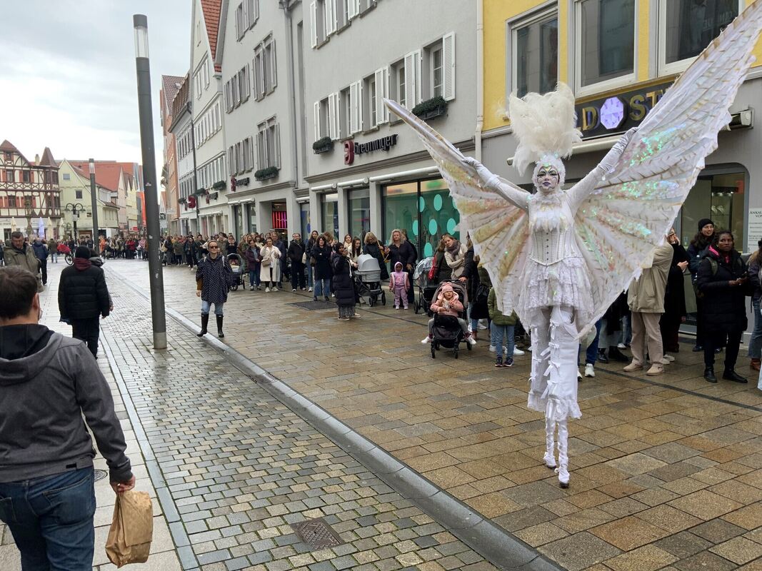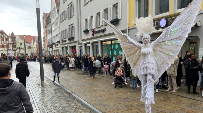 Auf der Straße zu sehen war um die Mittagszeit nichts mehr. Nur die beiden Engel tanzten noch durch die Einkaufsstraße. Drinnen drängelten sich weiter Fans der schwer angesagten dänischen Handelskette, die in Deutschland rund 70 Shops betreibt. (GEA)