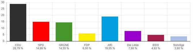 • Union vor AfD, SPD, Grünen und Linken, BSW und FDP raus