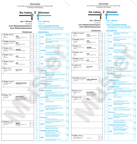 19:06 Uhr Im Wahlkreis Reutlingen stehen neun Kandidaten auf dem Stimmzettel.