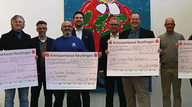 Womit alle der Käufer der 18. Auflage letztlich sich selbst und anderen etwas Gutes getan haben. In den Räumen der Kreissparkasse Reutlingen wird bei der symbolischen Scheckübergabe klar, dass jeweils 5 500 Euro für die Empfänger viel Geld sind – und zahlreichen Menschen Freude bereiten wird.