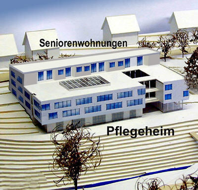 So ähnlich wird das Gönninger Seniorenzentrum aussehen: Die beiden Mittelgeschosse bieten 48 Pflegeplätze, darüber sind sieben »betreute« Altenwohnungen, unten Gemeinschaftsräume und eine Caféteria mit Blick auf die Wiesaz.