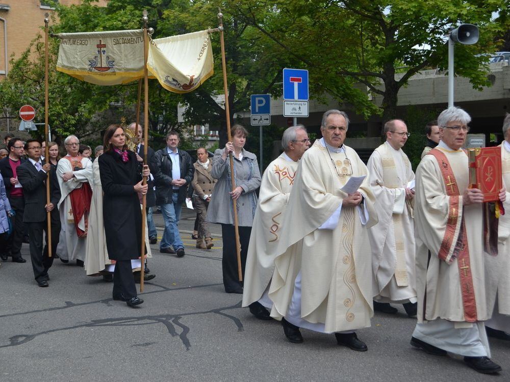 Bei der Prozession trugen auch Frauen den Himmel über der Monstranz. FOTO: CHATZINIKOLAOU