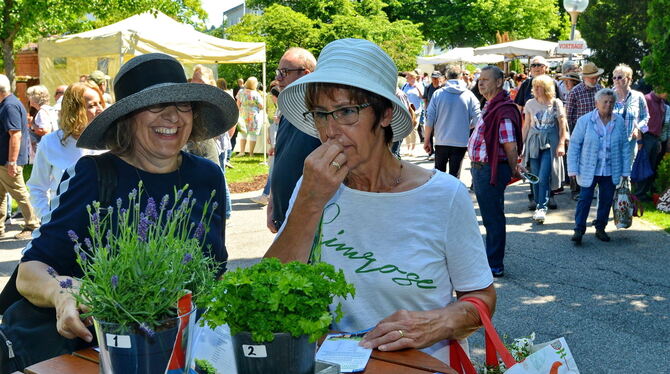 Zum zehnten Mal lockt die Pflanzenpracht Erika Mühleis von Göppingen nach Reutlingen. Die eine Stunde fährt sie gerne, denn »es ist jedes Mal toll.« In der Pomologie findet sie Anregungen, verschiedene Möglichkeiten den Garten zu gestalten, sie mag die Stimmung und die schönen Stände. »Es gibt hier tausend Sachen«, sagt sie.