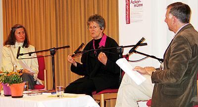 Dr. Lea Ackermann (Mitte) stellte sich im Spitalhofsaal den Fragen von Petra Zellhuber-Vogel und Lothar Schubert.