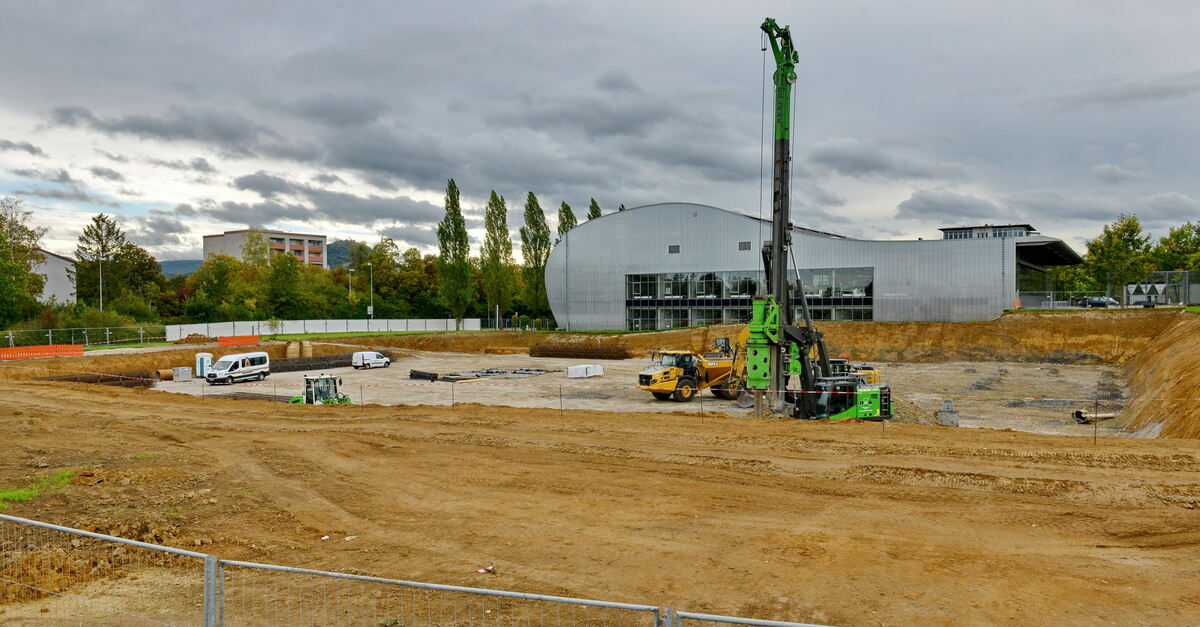 Die Bauarbeiten im Orschel-Park sind im vollen Gange. Es entsteht ein 13 500 Quadratmeter großes Bürogebäude neben der »Welle«. FOTO: NIETHAMMER