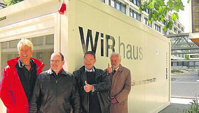Fraktionszimmer der unübersehbaren Art: Jürgen Straub (von links), Hans Wucherer, Werner Felix Schobel und Thomas Ziegler vor dem »WiR-Haus« direkt am Rathaus.